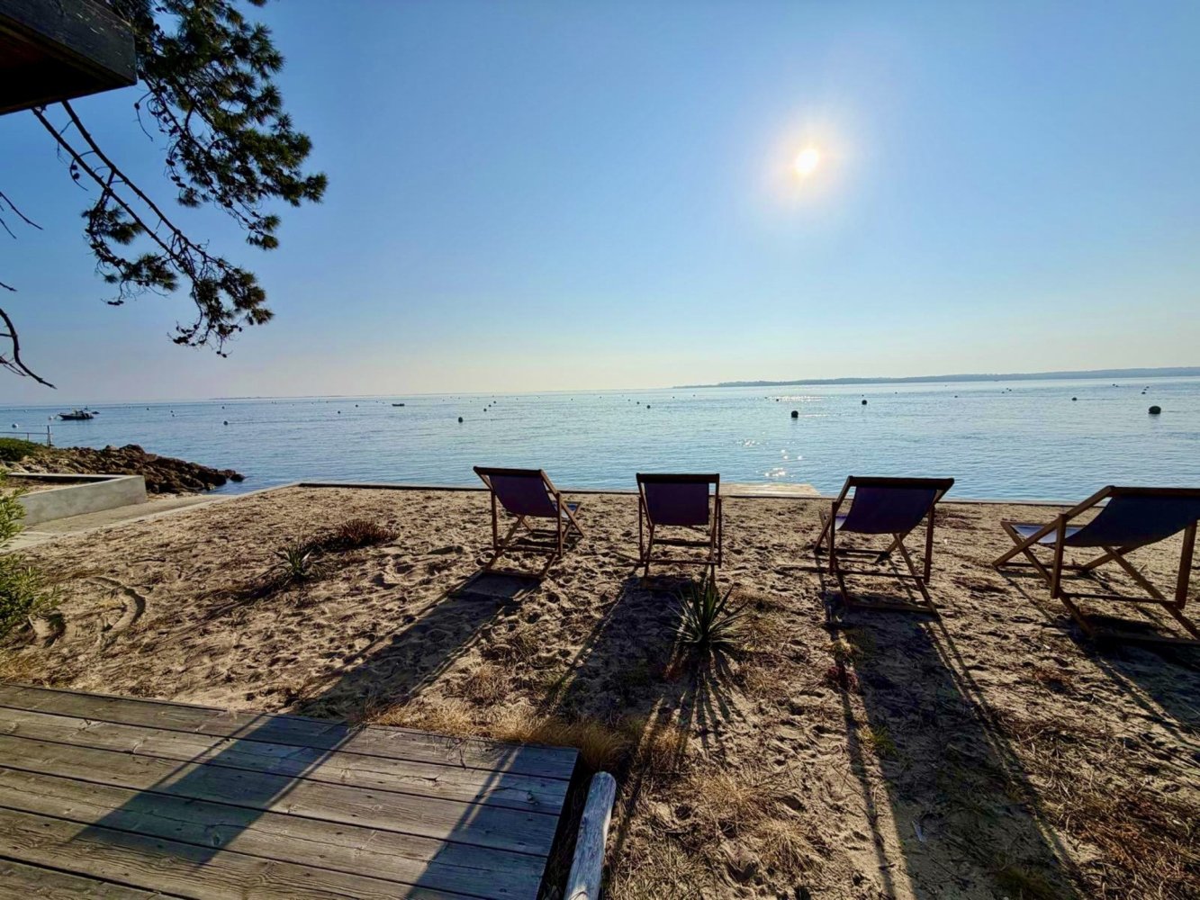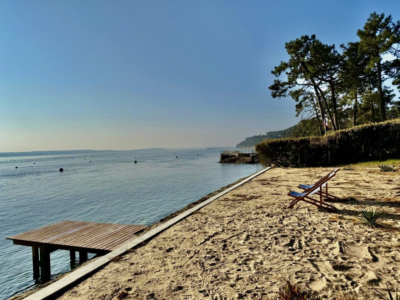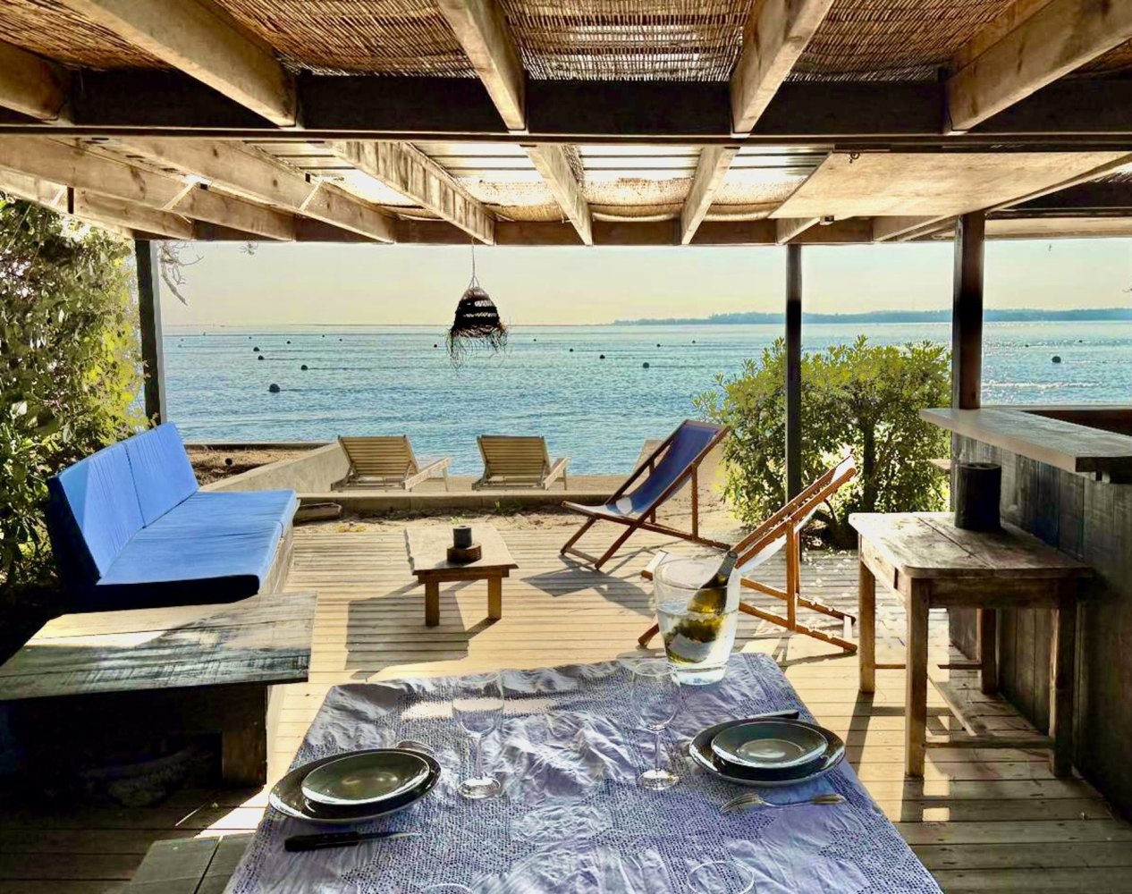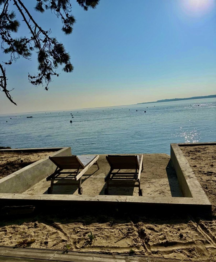 Direkt am Wasser gelegen, bietet dieses 2000 m² große Anwesen einen herrlichen Blick auf die Bucht und die Düne von Pilat. Das Anwesen besteht aus zwei Häusern und ist ideal für zwei Familien oder auch Mehrgenerationenfamilien geeignet, da es Platz für bis zu 14 Personen bietet.