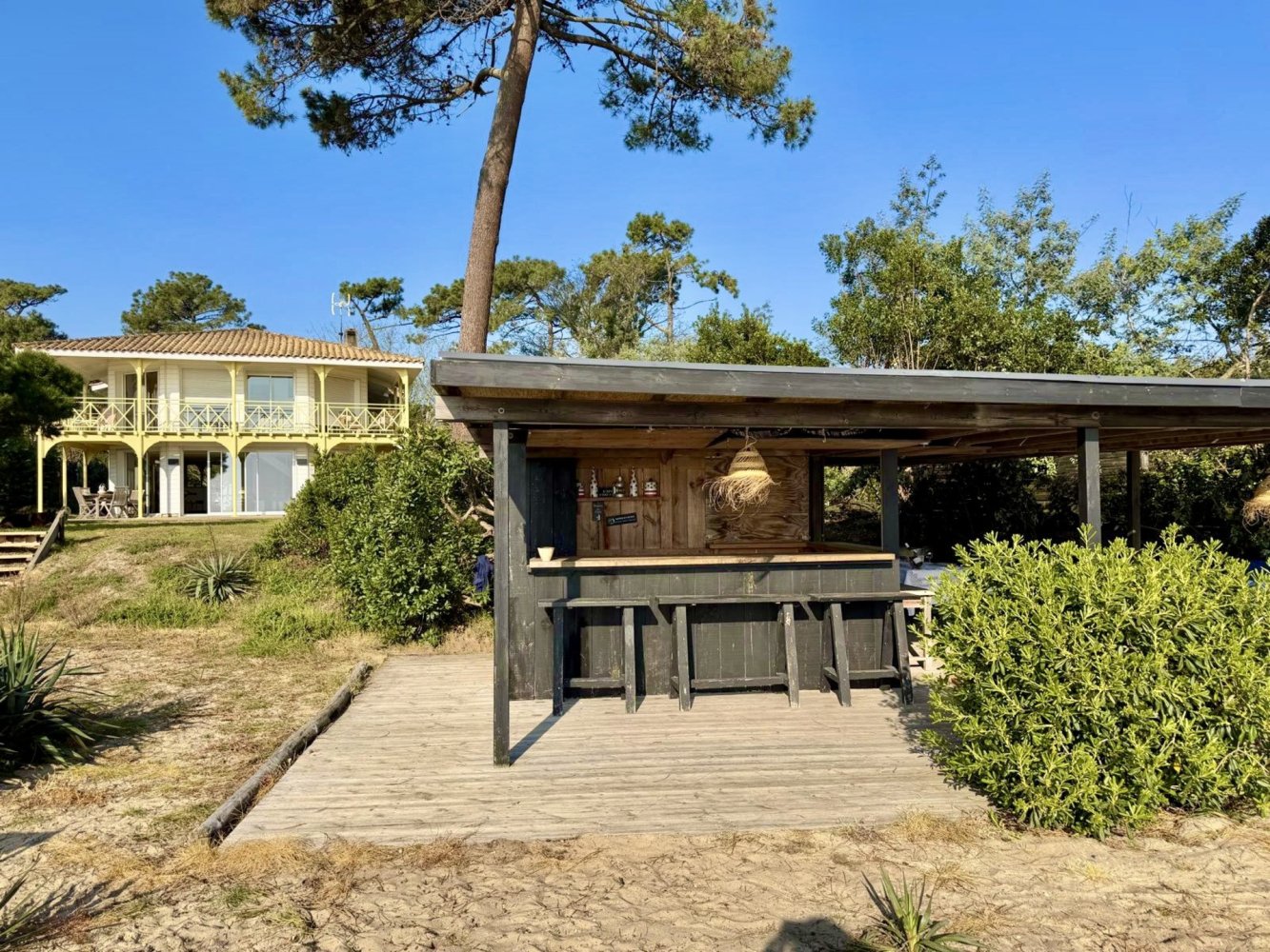 Entfernungen: Bucht 1 km, Meer durch den Wald 1,5 km, Restaurants in Port de la Vigne 400 m, Ortszentrum von Cap Ferret ca. 2,5 km, Geschäfte ca. 2,5 km