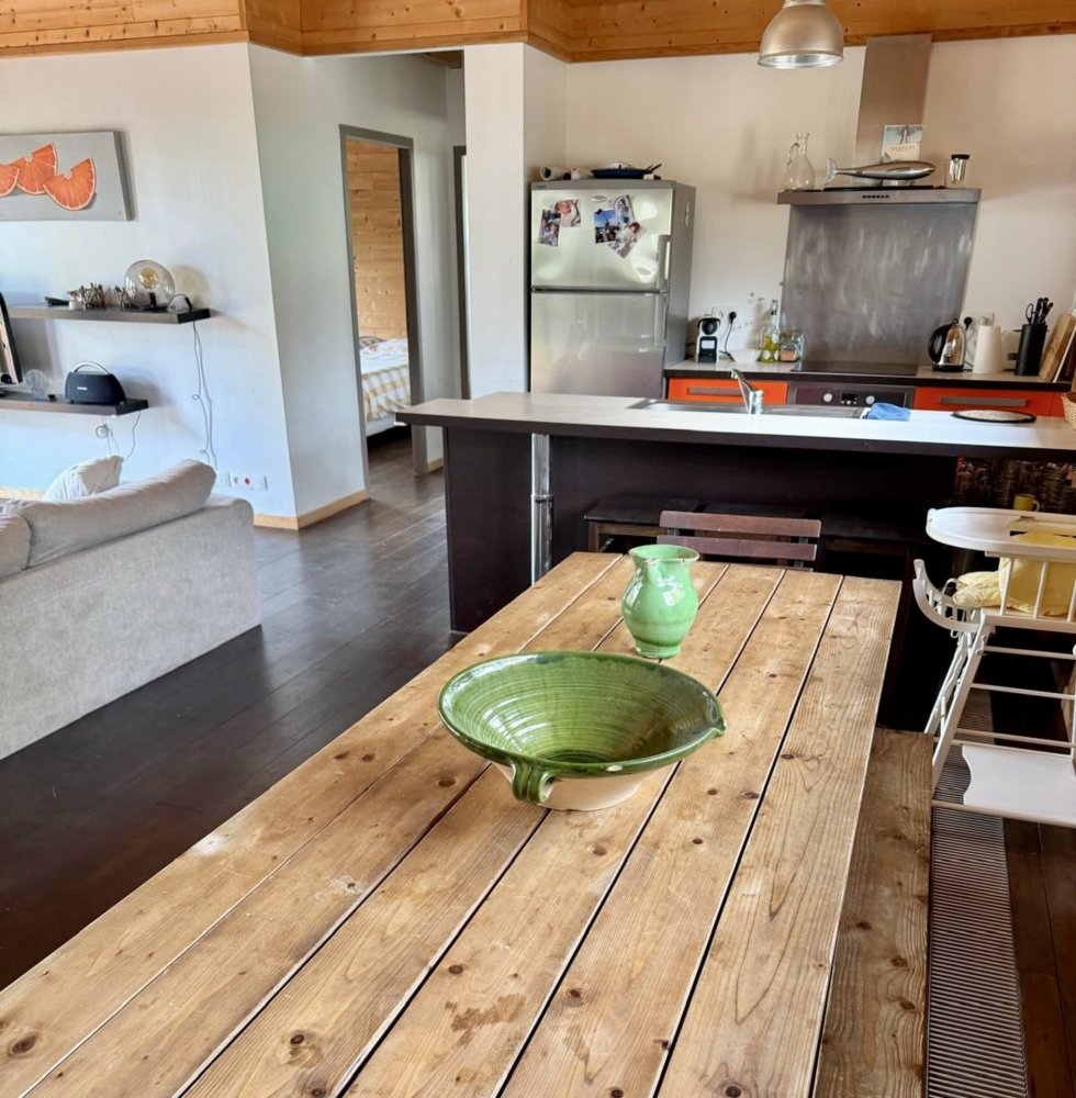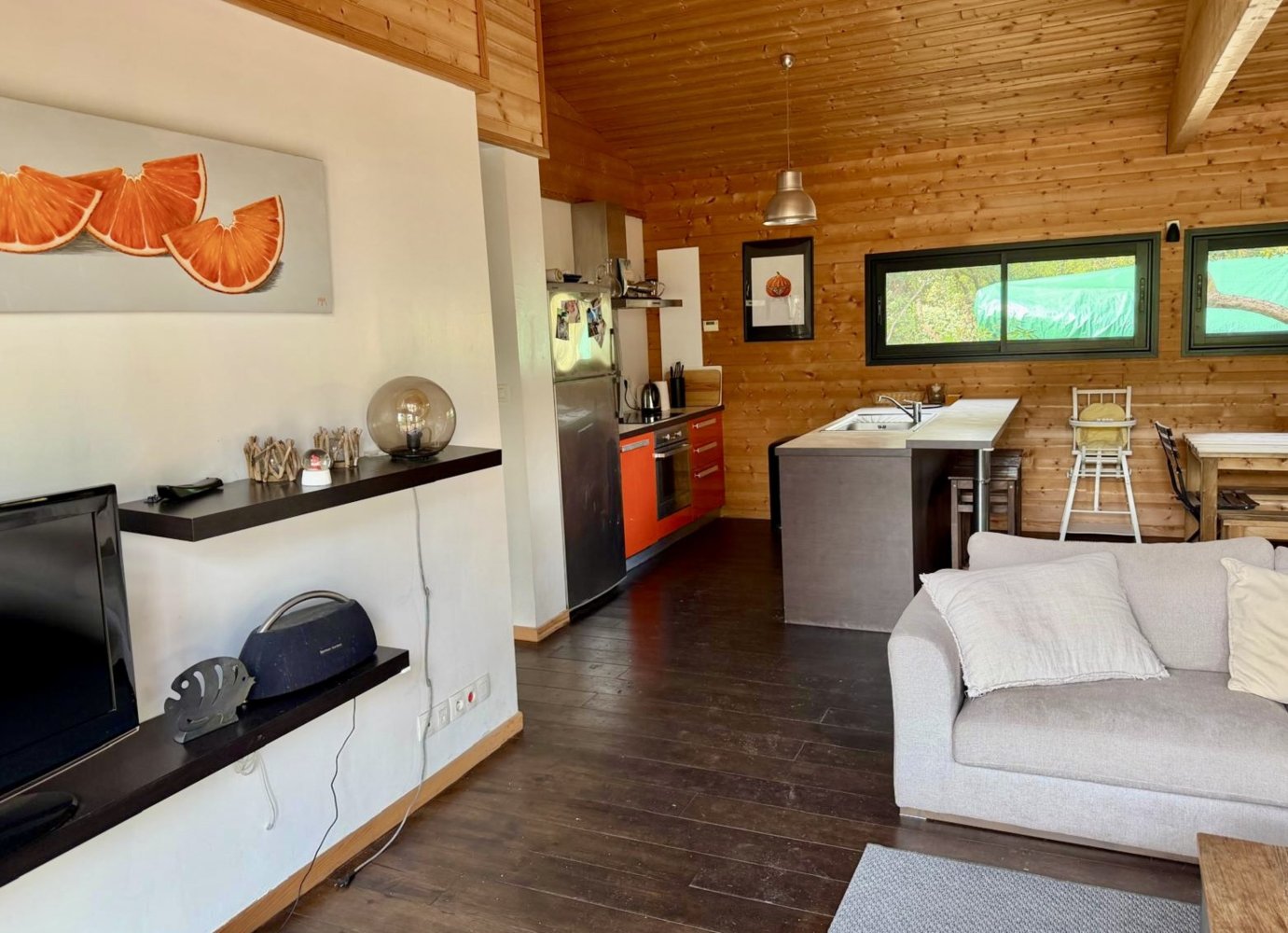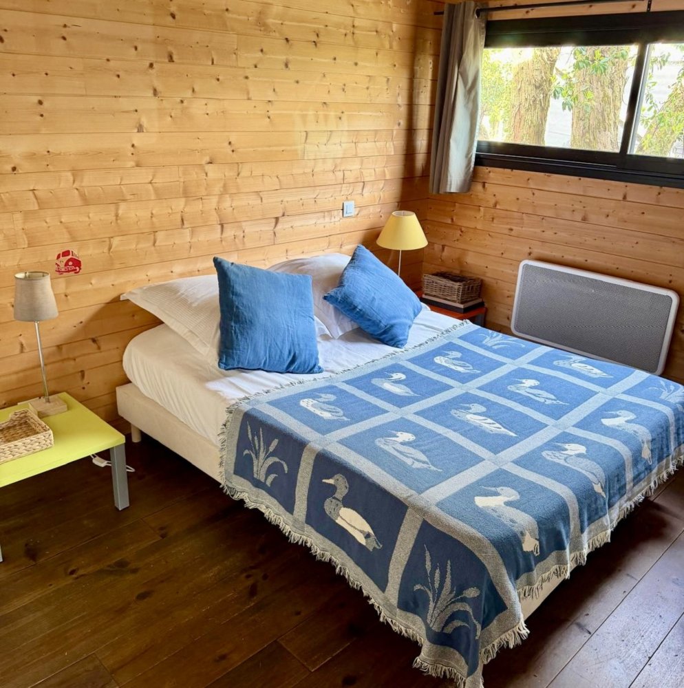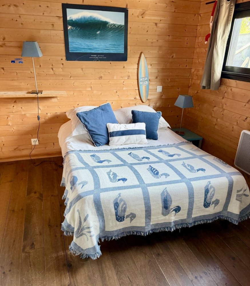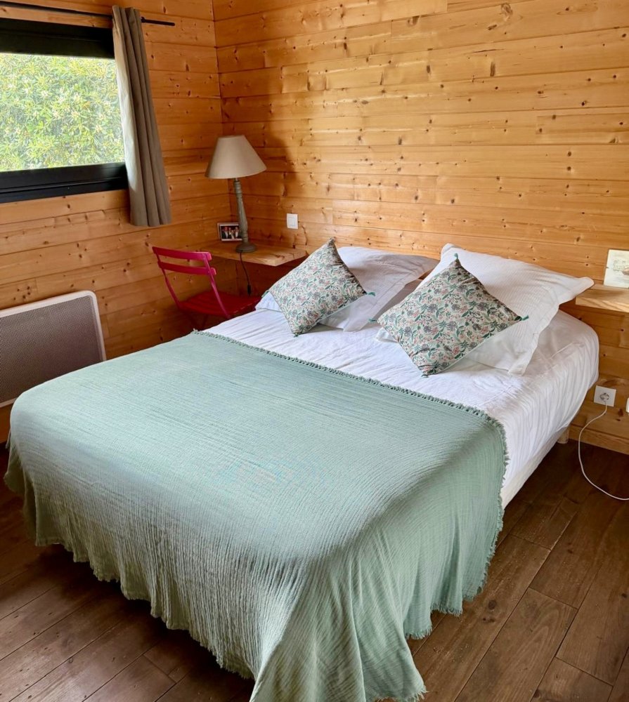 2) Typisches Chalet im Cap-Ferret-Stil für 6 Personen, 90 m²: Schönes Holzhaus mit einladendem Wohnzimmer und Zugang zur Terrasse, voll ausgestatteter offener Küche und Essbereich. 3 Doppelzimmer (eines mit einem 1,60 m breiten Doppelbett und zwei mit 1,40 m breiten Doppelbetten). Badezimmer und separates WC. Das Chalet verfügt über eine schöne, große Holzterrasse mit Tisch und Sitzecke.