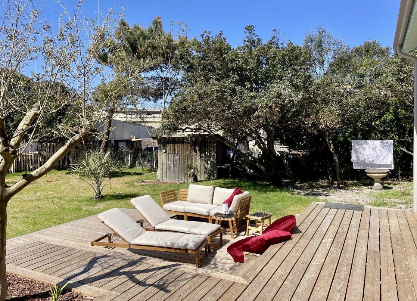 In perfekter Lage in Lacanau-Océan, ruhig aber sehr zentral, 5min zu Fuß zum Strand und Zentrum, liegt dieses ganz neu renovierte und erweiterte Haus mit fantastischer Holzterrasse und großem Garten (die letzten Arbeiten und die Anlage/Fertigstellung des Gartens erfolgt dieses Frühjahr, Fertigstellung bis April).