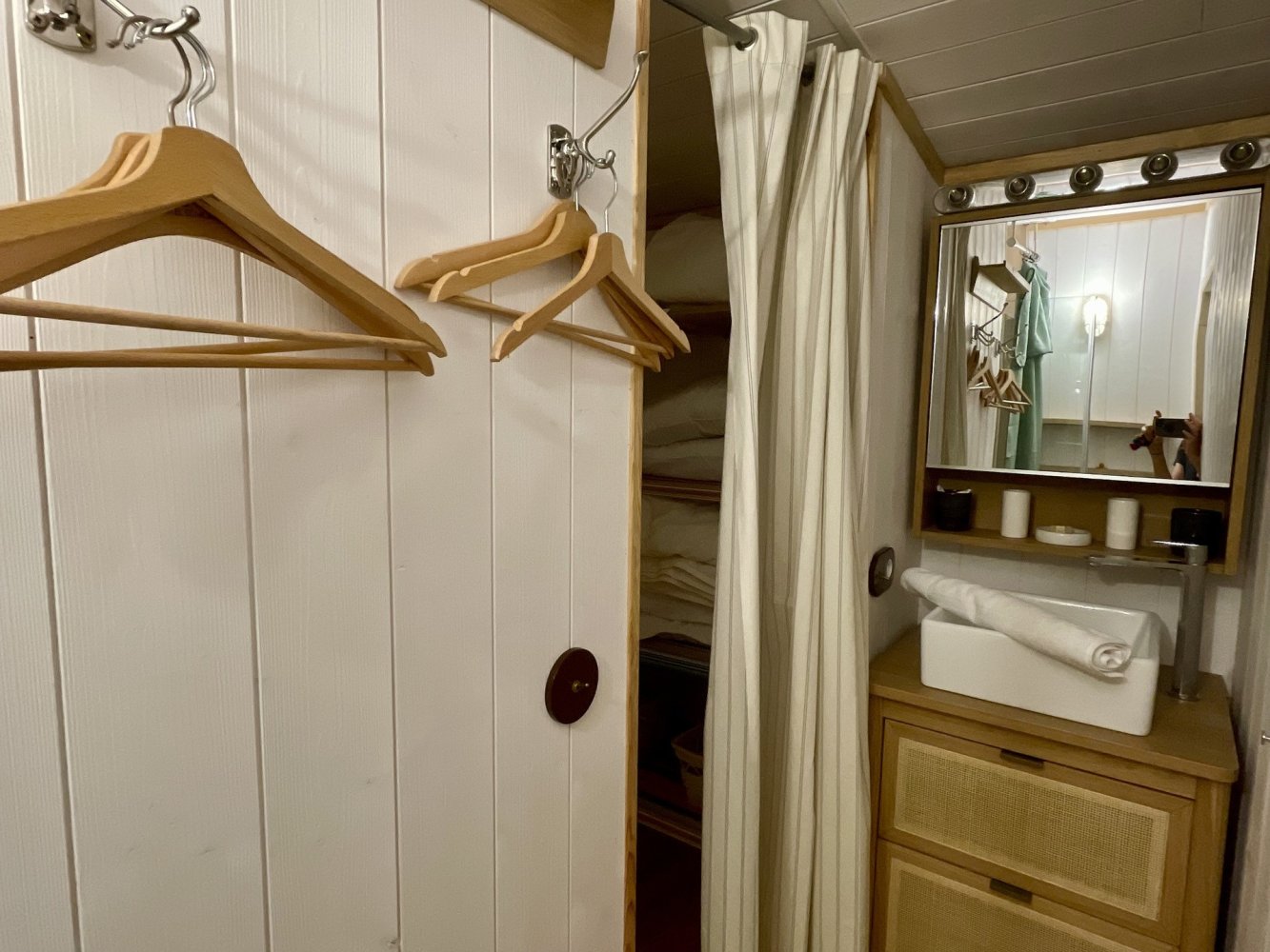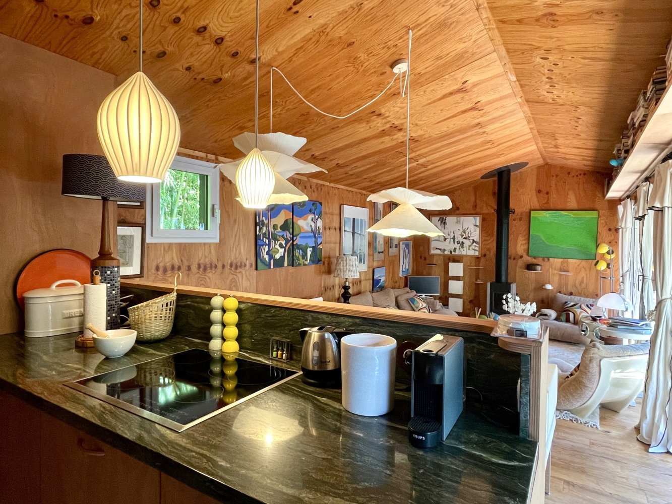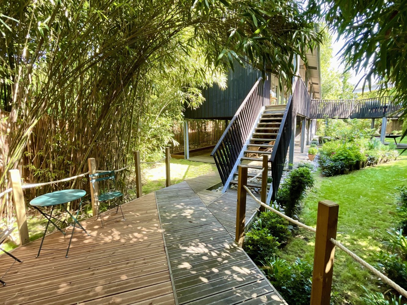 Stunning stilt house with a beautiful garden and spacious terraces and balconies on a gated property in L'Herbe, just a few steps from the bay beach. The main part of the house is accessed via two wooden stairs, one to the right and the other to the left of the terrace. It features a living room with an integrated kitchen, TV, Wi-Fi, a sofa area, and access to the master suite with a 1.60m double bed and a private shower room. From the terrace, there is access to two further bedrooms (one 1.60m double bed and one twin bed (2x0.80m)), which share a shower room and toilet, accessible from both rooms.
