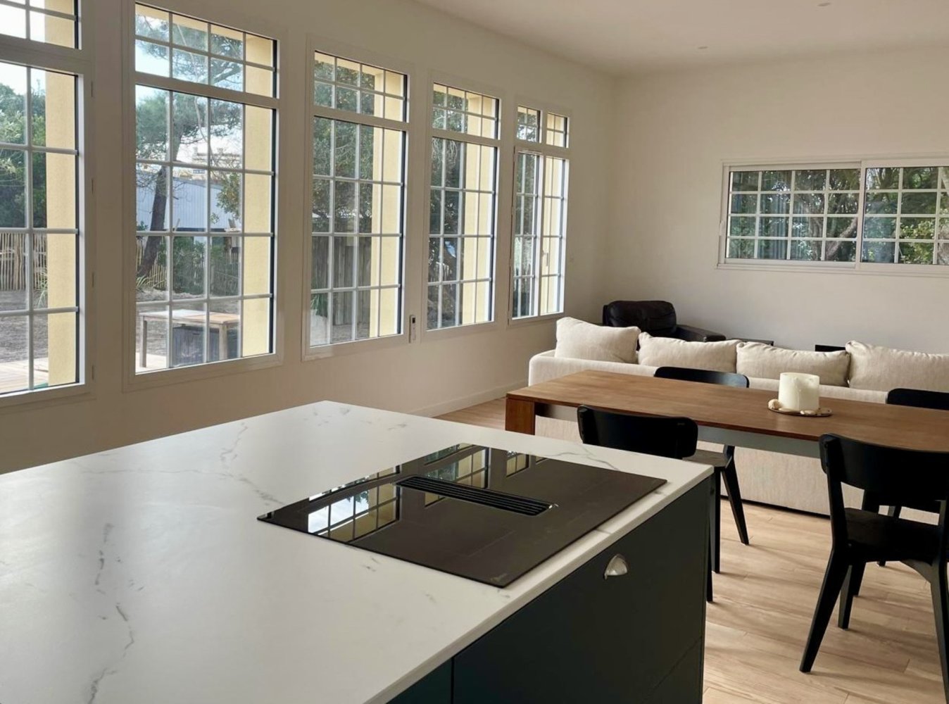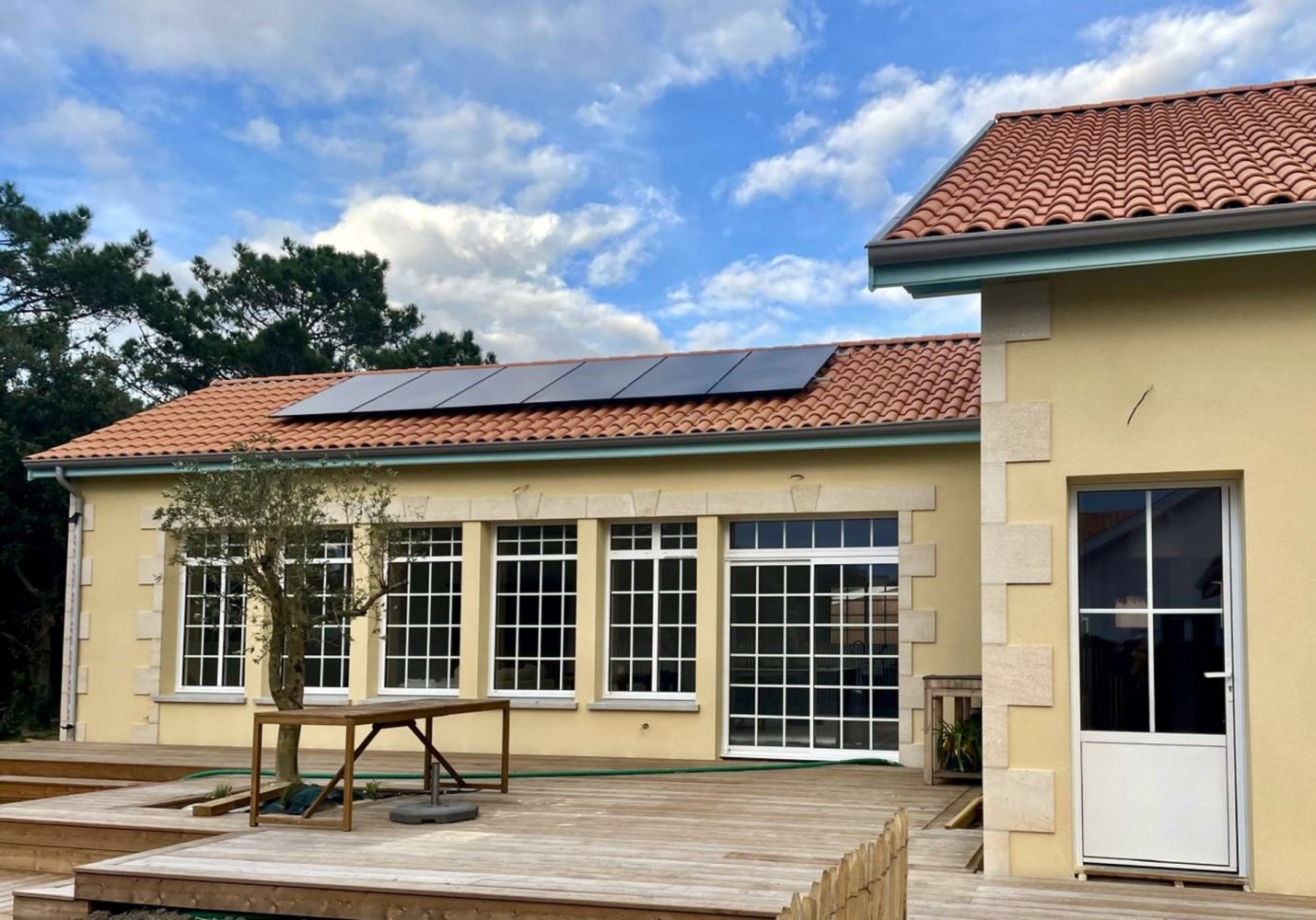 In a perfect location in Lacanau-Océan, quiet yet very central, just a 5-minute walk to the beach and town center, lies this newly renovated and extended house with a fantastic wooden terrace and large garden.