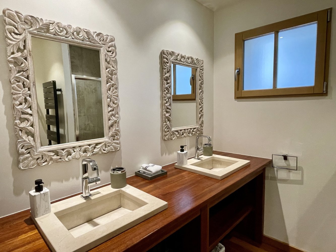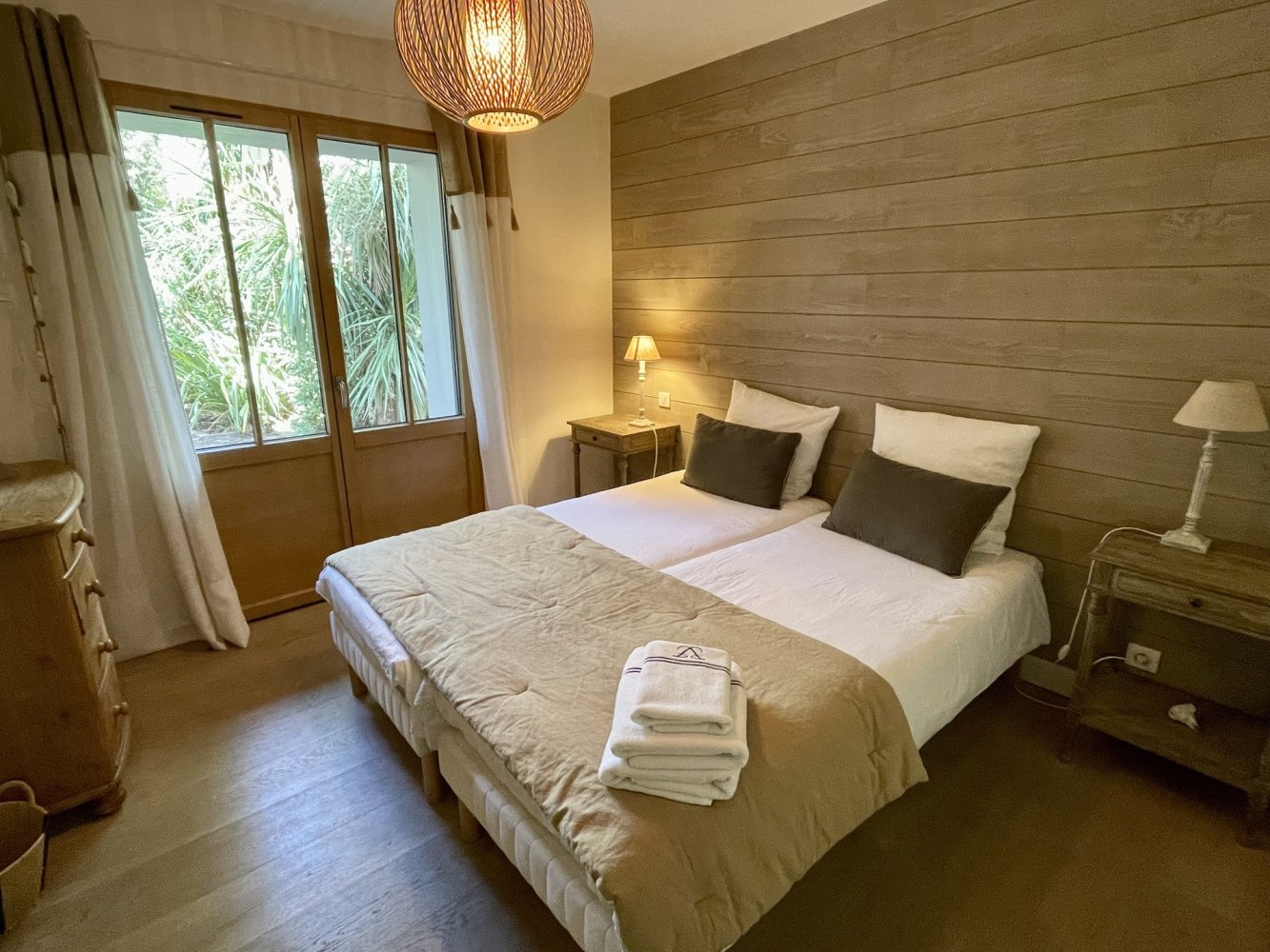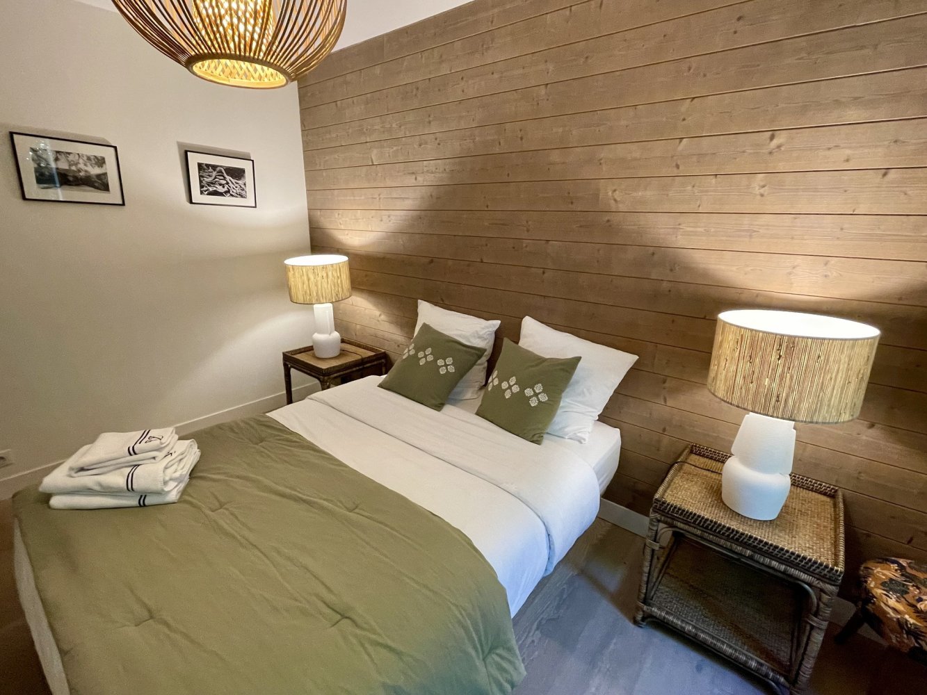 Il ya 4 chambres supplémentaires au rez-de-chaussée, chacune avec un lit double et accès au jardin. Il y a une salle de douche et une douche privative entre deux chambres. Deux WC indépendant.