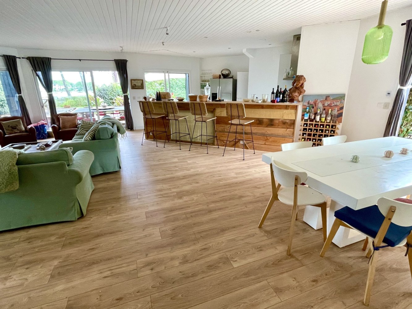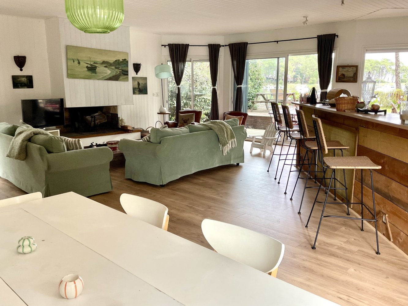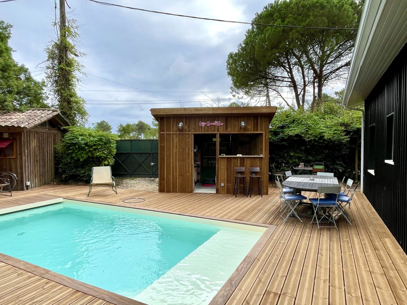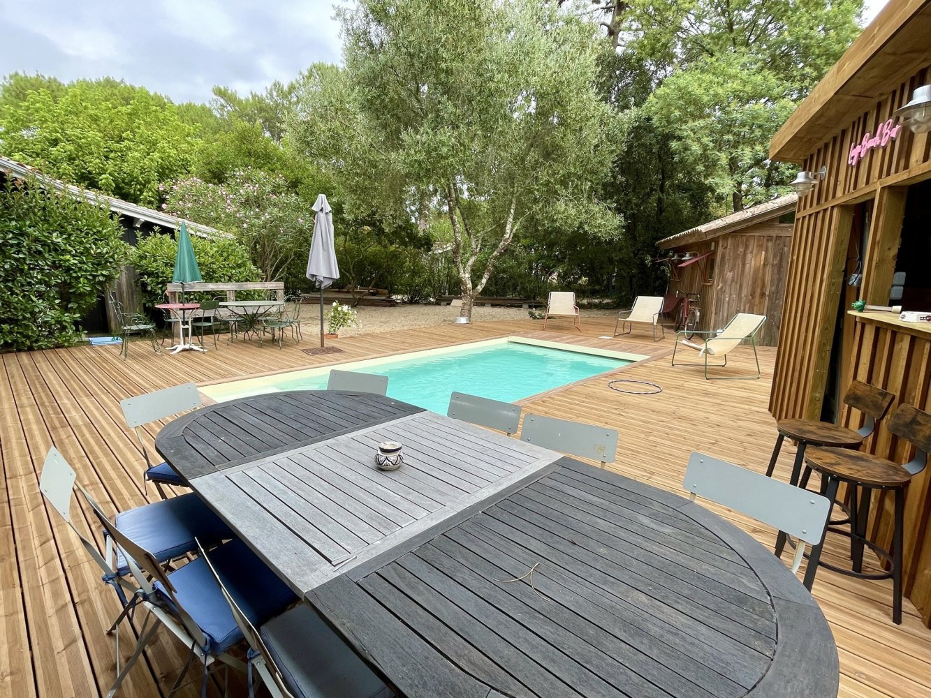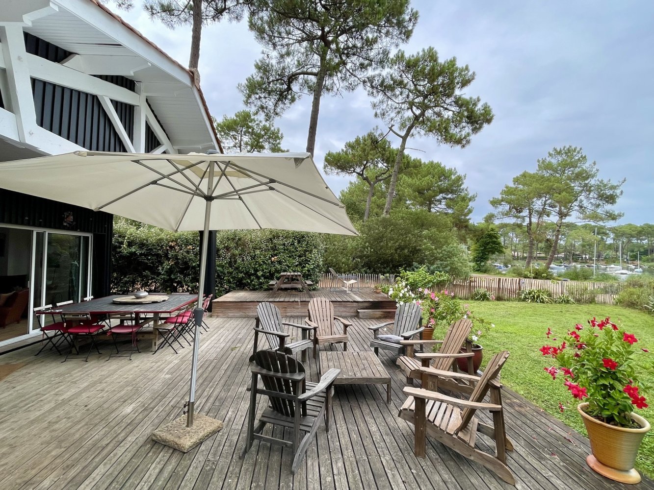 Terrain merveilleusement situé avec accès direct au lac, et une belle plage de sable à ce niveau du lac. La maison est très agréable et lumineuse avec un salon spacieux, ensemble canapé avec télévision et cheminée, salle à manger et cuisine entièrement équipée. Belle terrasse côté lac avec meubles de jardin, parasol et barbecue. Une chambre avec un lit double de 1,60 m, trois chambres chacune avec un lit double de 1,40 m et une chambre avec 2 lits simples. Deux salles de bains et 2 WC. A 10 m du lac, à 5 km de l’océan et du centre de Lacanau-Océan.