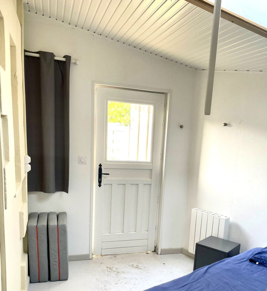 L’entrée principale de la maison se fait par l’une des chambres doubles. Il est également possible de sortir par la baie vitrée de la terrasse.