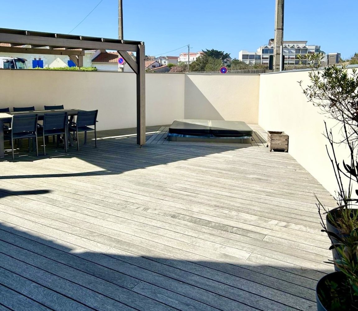 Maison arcachonnaise classique avec terrasse accueillante et jacuzzi, située en deuxième ligne de la dune, à proximité de la plage Nord, au cœur de Lacanau-Océan. Implantée sur un terrain d’angle entièrement clos, cette maison très bien équipée et joliment rénovée offre une superbe terrasse confortable exposition ouest, direction dune. Une place de stationnement ainsi qu’un local à vélos sont également à disposition.