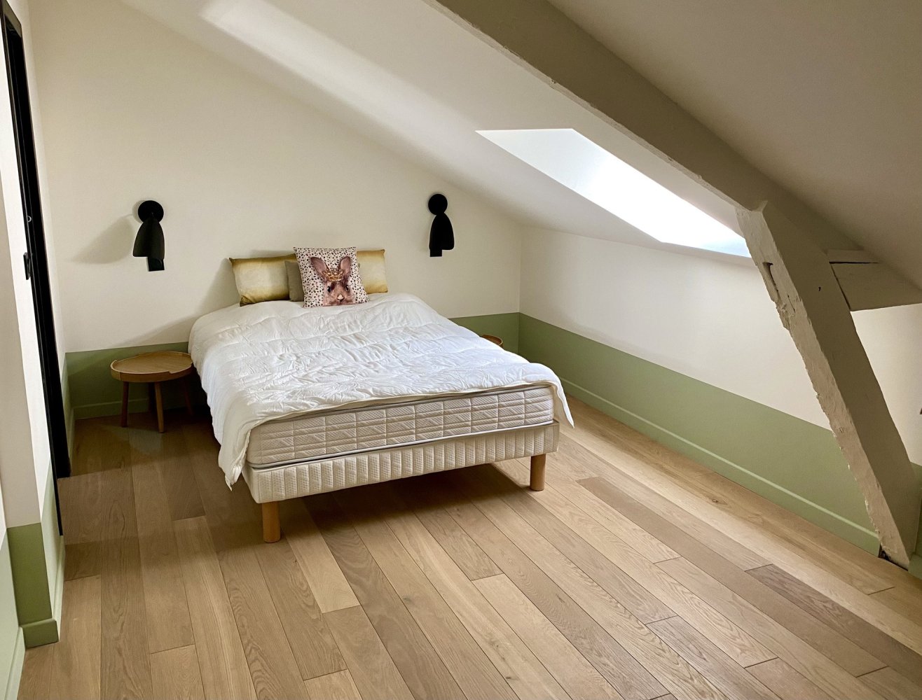 La maison peut accueillir jusqu’à 12 personnes. Elle offre un beau espace de vie avec coin séjour, table et cuisine américaine ouverte, TV cable et Wifi.