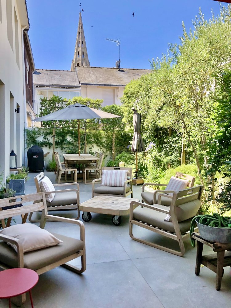 Belle terrasse avec des coins salons extérieurs conviviales et BBQ. Parking public à 150m de la maison et possibilité à déchargé la voiture devant la maison.