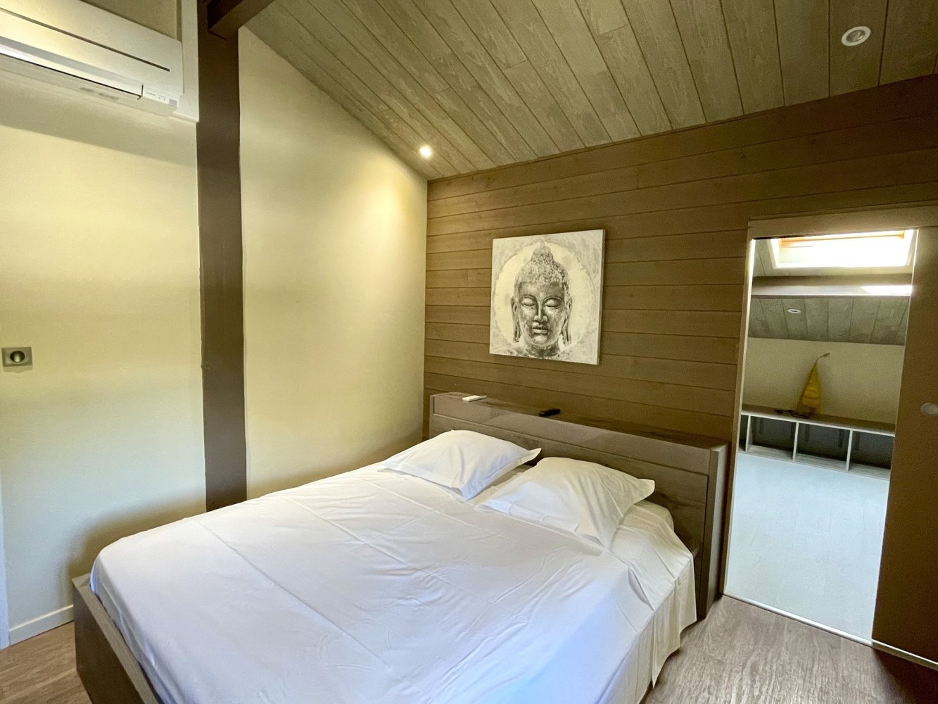 Zusätzliches Gästehaus mit kleinem Wohnbereich, Küchenzeile, Schlafsofa 1.20m, kleines Schlafzimmer mit Einzelbett und Duschbad, separate kleine Terrasse.