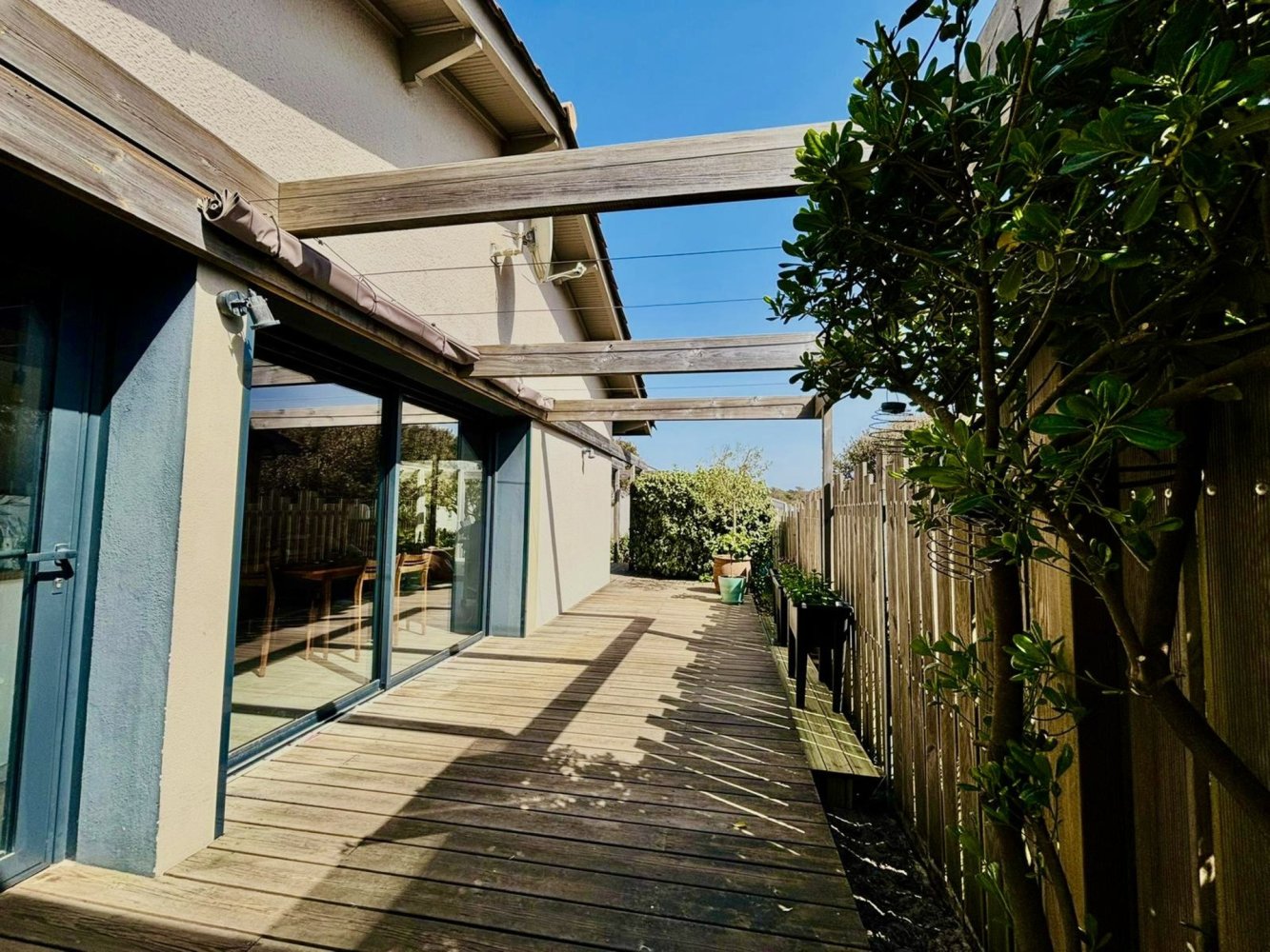 Neu renoviertes modernes Haus nahe zum Strandzugang in einer reinen Wohnstraße auf einem abgeschlossenem Grundstück mit sehr schönen Holzterrassen, Gartenmöbel, Tischtennis und Aussendusche.
