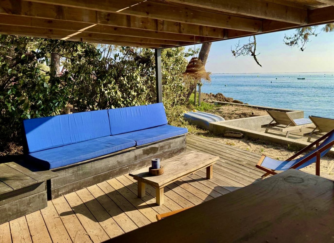 Distances: Bay 1m, Ocean via the forest 1.5km, restaurants at Port de la Vigne 400m, Cap Ferret town center approximately 2.5km, shops approximately 2.5km.