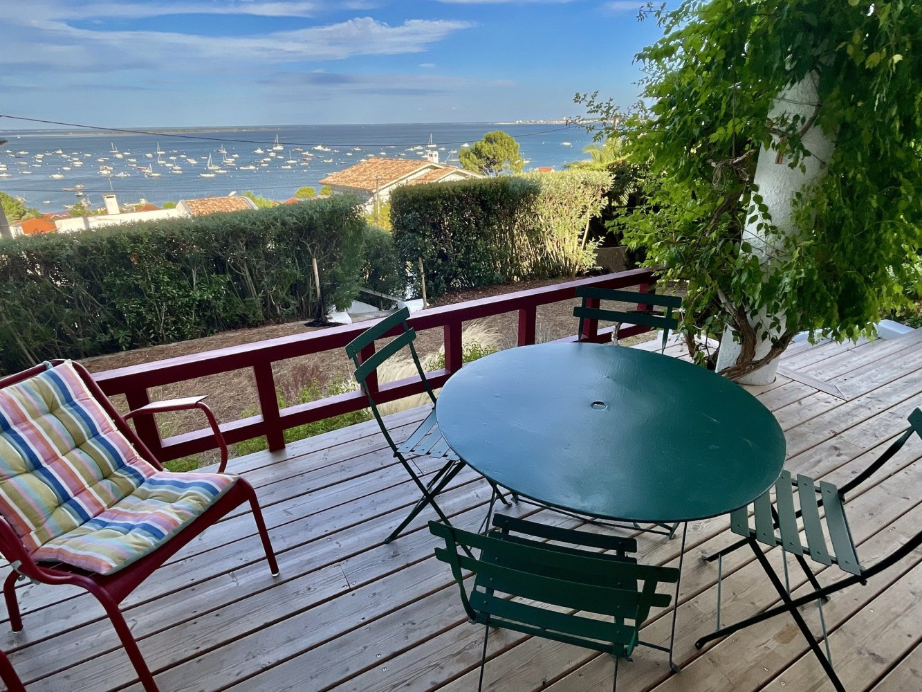 A0386 Maison avec magnifique terrasse et vue sur les arbres, le port de La Vigne et le Bassin